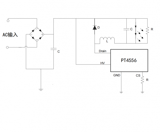 无需VDD电容,非隔离降压型 LED 恒流驱动芯片PT4556