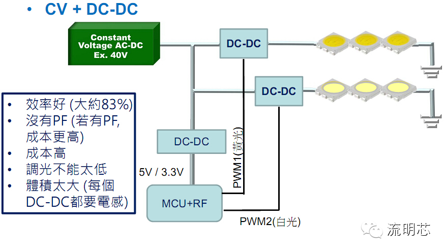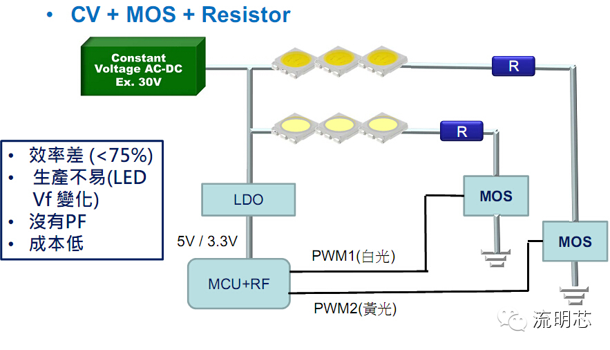 我们首先来了解一下目前市面上常见的低成本,低效率,并且无PF的可变色温及亮度的两种方法