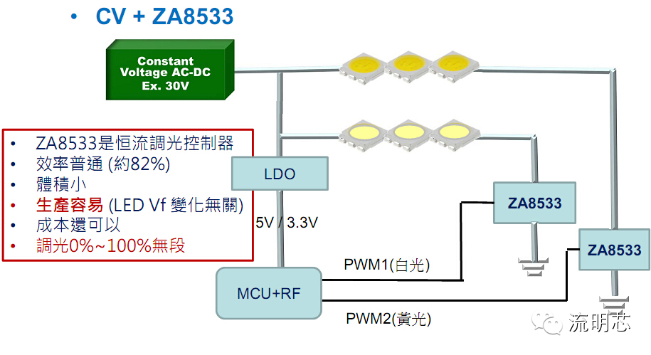 2. ZA8533 之线性恒流调光方案, 可达到0%~100% 无段调光效果