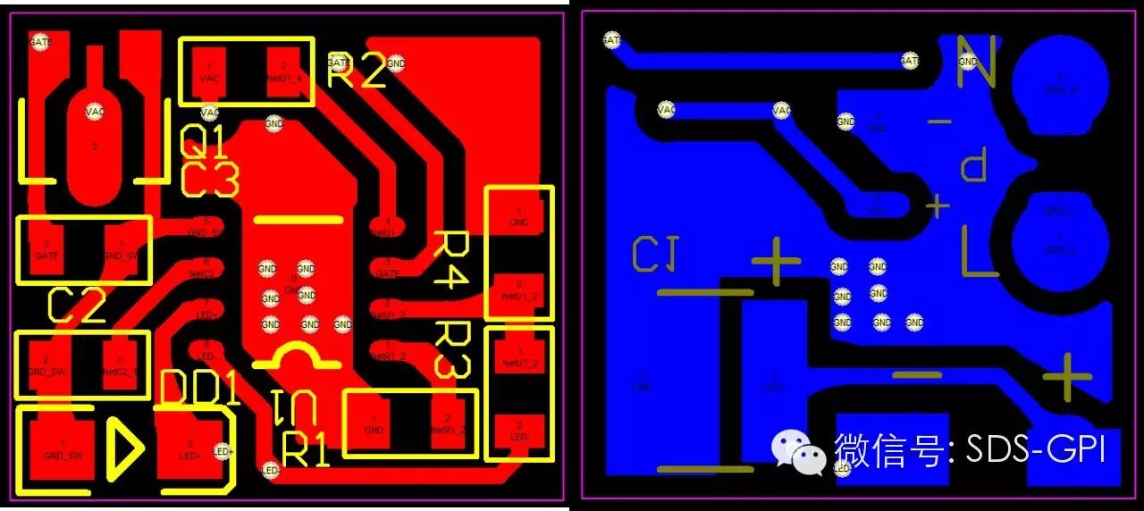 ①FR4双面板设计,节约PCB空间,减少板材成本。